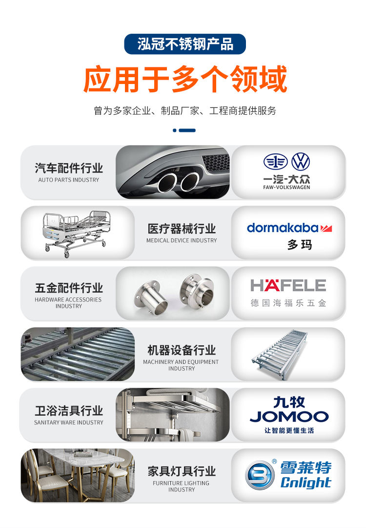 用途范圍:汽車配件,金屬制品,家用電器,機械制造,衛生潔具,軌道交通,壓力容器,建筑裝飾,餐飲廚具,化工設備,日用電器,食用機械,結構制管等